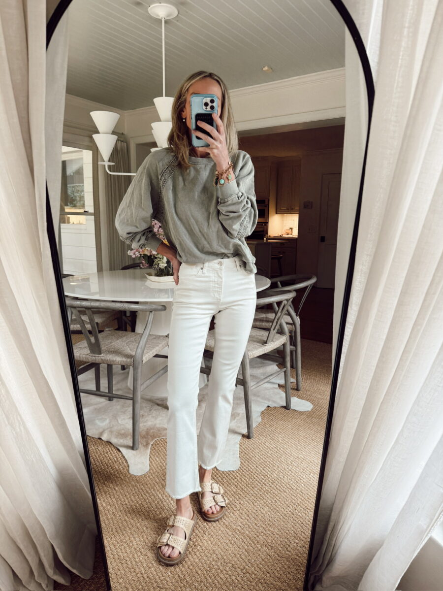 4. Long Sleeve Tee & White Jeans
